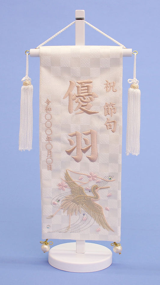 女の子の名前旗 高さ30.5cm(ミニ)正絹鳳凰刺繍