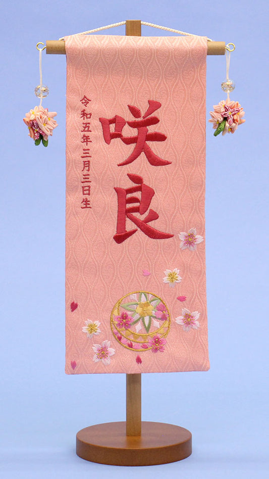 女の子の名前旗 高さ39cm(小)サーモンまり刺繍