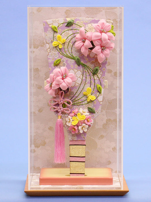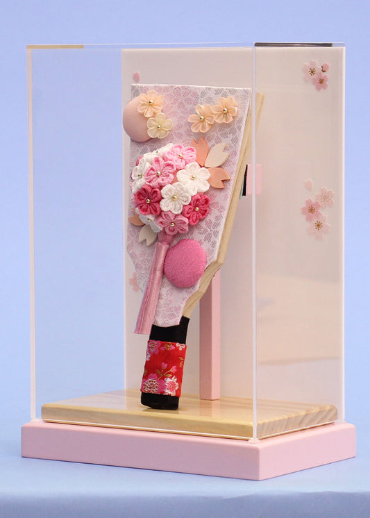 hirimen Hagoita “Hanazukushi Silky Pink” | Natural Acrylic Display Case