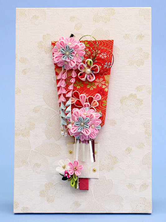 A compact and stylish Hagoita No. 7, Ken-Tsumami with Flowers, White Cherry Blossoms, Wall Hanging