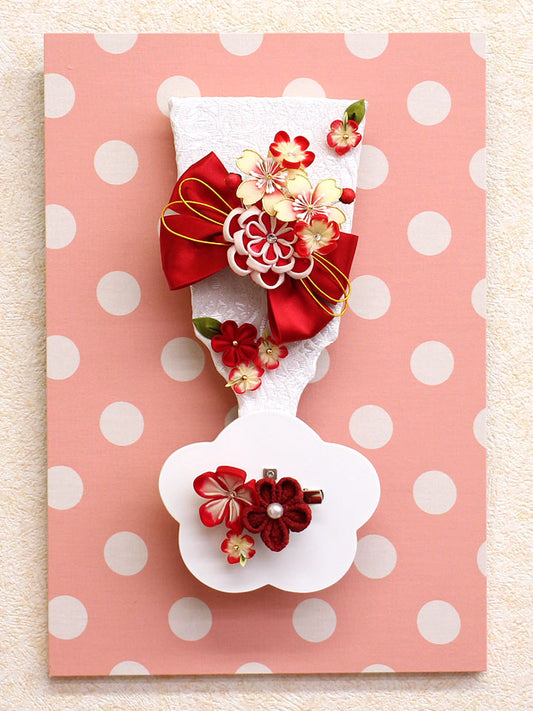 Oshie Hagoita Kanoko Hana Mai White Cherry Blossom Wall Hanging Decoration with Stand