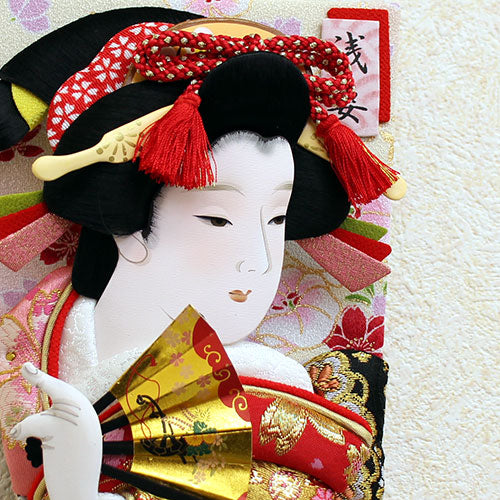 New Year's decorations for the first New Year and the first festival. Wall-hanging type Oshie Hagoita decoration. Case not included. Size 16x76 (width x height) Product weight: 0.55kg A traditional Hagoita with an elegant face has been made into a stylish burnt paulownia wall decoration.