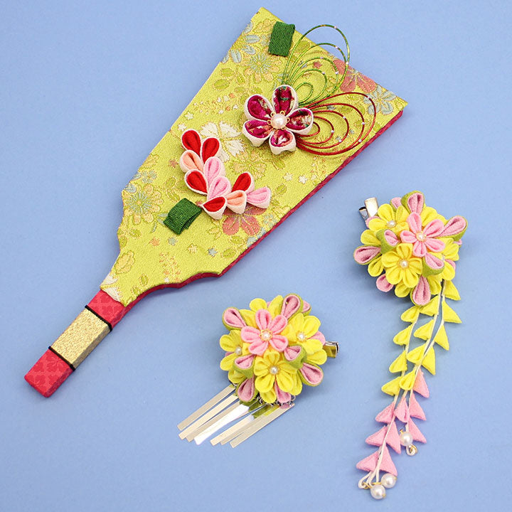 JUHO-TOUGEI Stylish Hagoita with removable hair ornaments, wall hanging decoration, natural