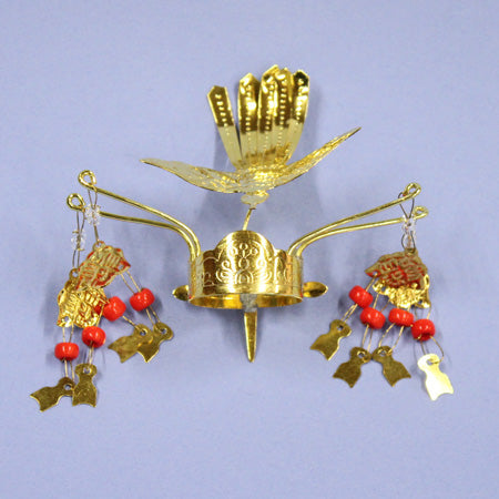 It may be used for standing dolls made of wood, but it is originally a crown for dolls called hagoromo, and is different from the gorgeous plated ones used for Hina dolls. If you want to use it for a Hina doll dressed in a costume, you will need to bend or cut the pin yourself.