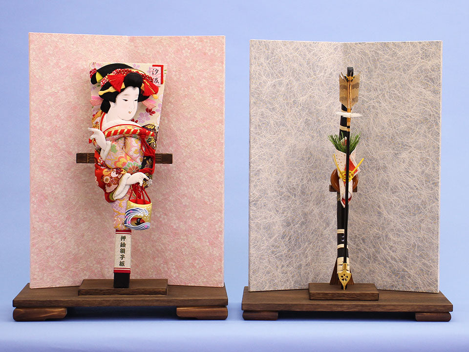 Hagoita size (width 36 x depth 21 x height 49) Hamayumi size (width 36 x depth 21 x height 49) A simple and clean combination of a hagoita with a folding screen and a hamayumi