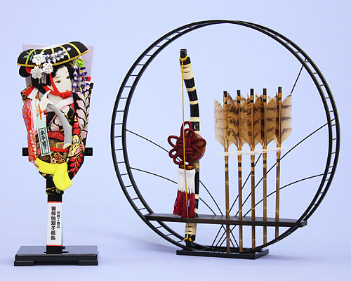 Hagoita size (width 16 x depth 12.5 x height 43) Hamayumi size (width 45 x depth 8 x height 45) A combination of a traditional Fujimusume hagoita and a modern round Hamayumi dan