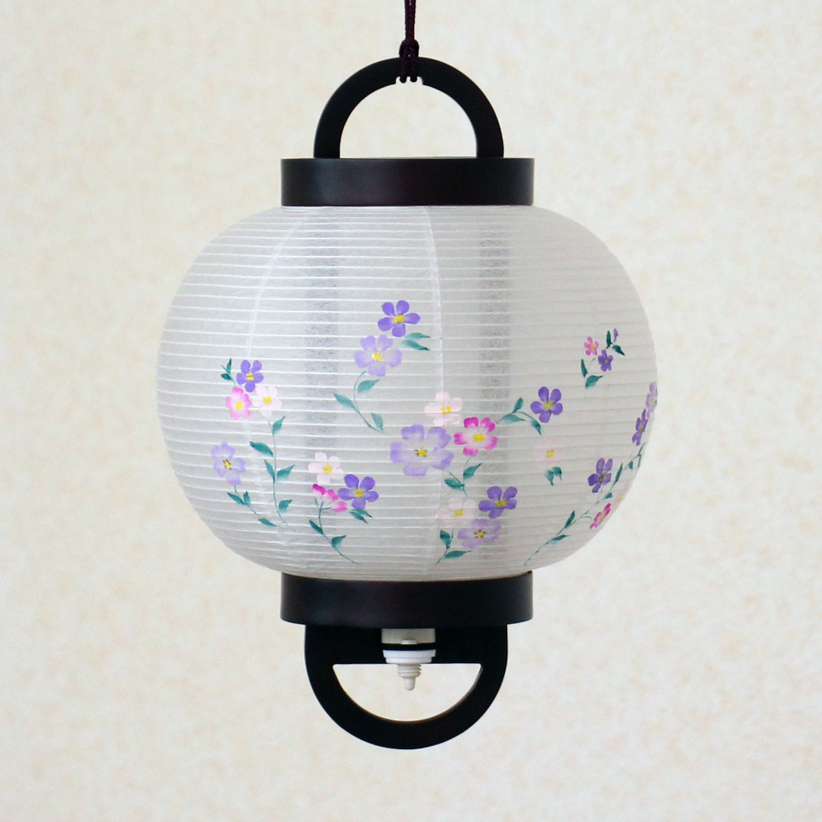 Compact hanging type Bon Festival lantern, Yurari, Violet pattern, Height 26cm, LED cordless lantern