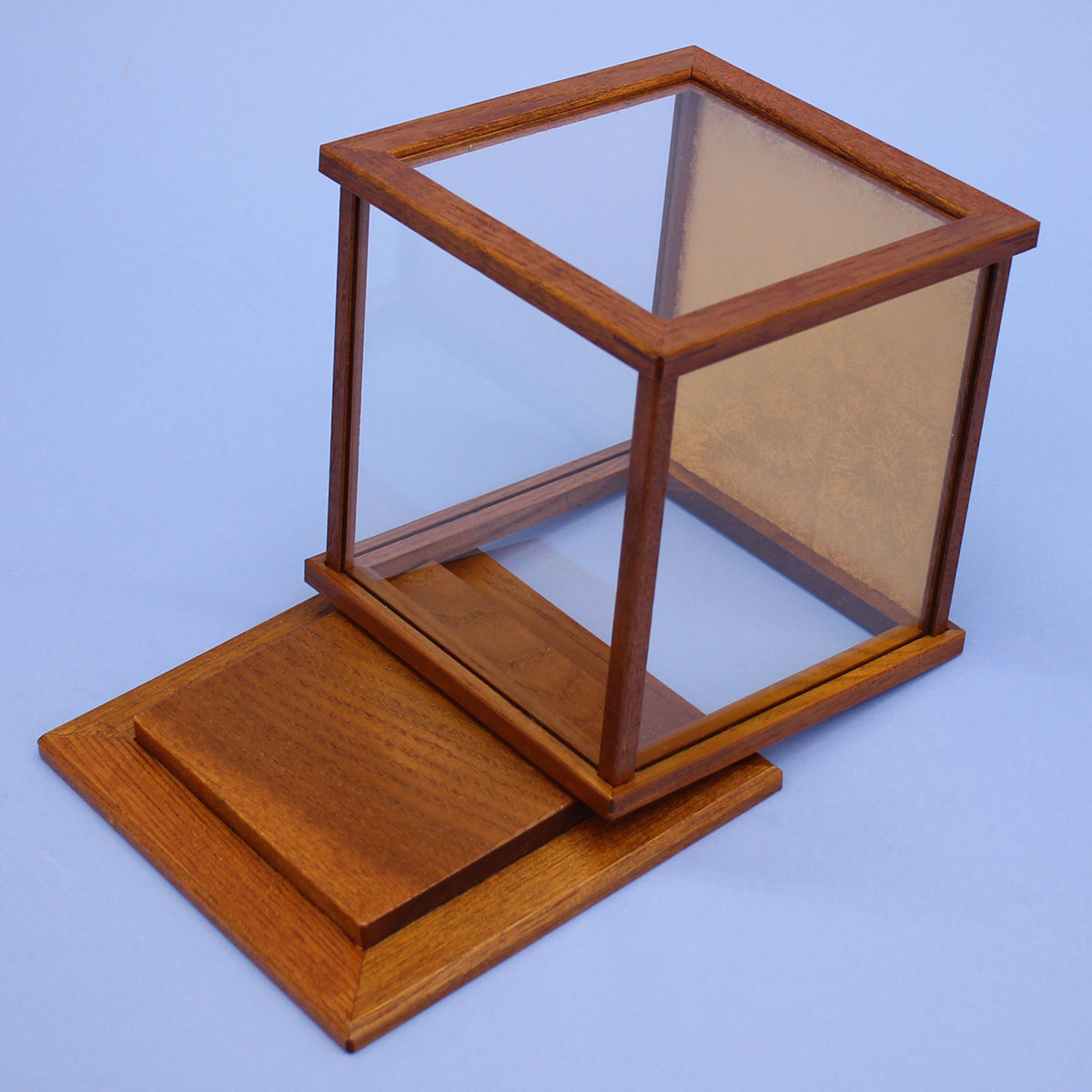 A doll case recommended by doll specialty stores. Material: Kihada wood. Simple and timeless wooden frame, glass. We cut and assemble the glass ourselves. The product dimensions are: width 13cm x depth 13cm x height 13cm.