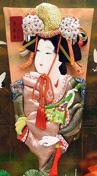 New Year decorations for the first New Year and first festival. A Hagoita decoration in a case. Size (width 50 x depth 38 x height 88) A traditional large Hagoita decoration with a stylish face. (Case with door, beveled glass)