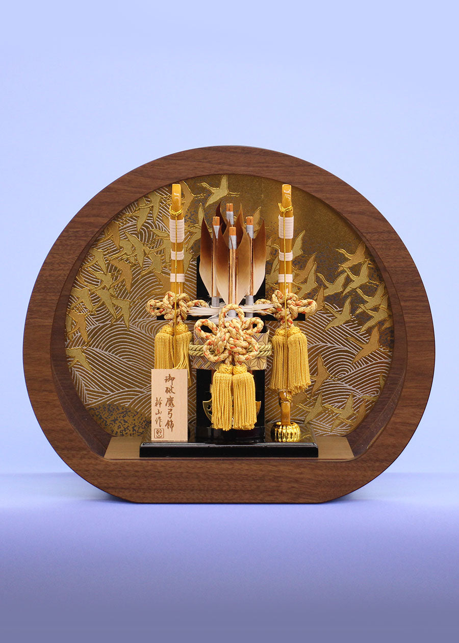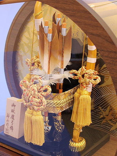 A New Year's decoration for the first New Year and the first festival. This Hamayumi bow comes in a case. Size (width 34 x depth 16 x height 30) Round acrylic case with a lid. The gold paint on the back of the oak painted frame gives it a furniture-like look, making this Hamayumi bow luxurious and impressive.