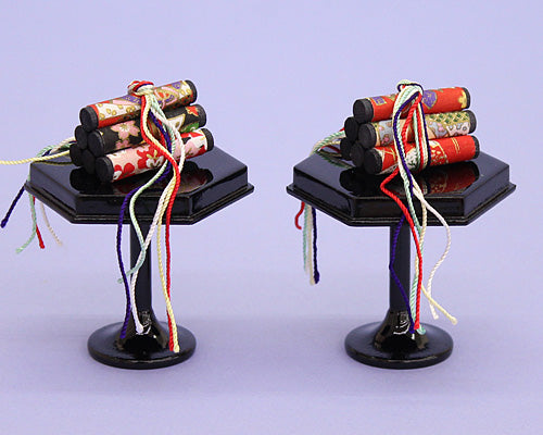 9-piece set of Hina doll accessories for five-tiered and seven-tiered display, No. 25 (wooden), black-lacquered