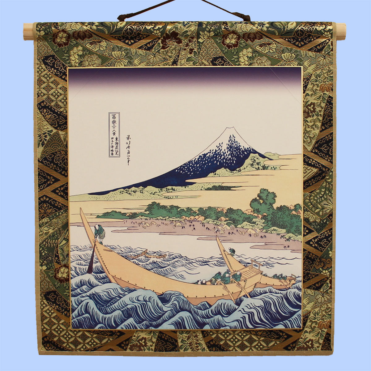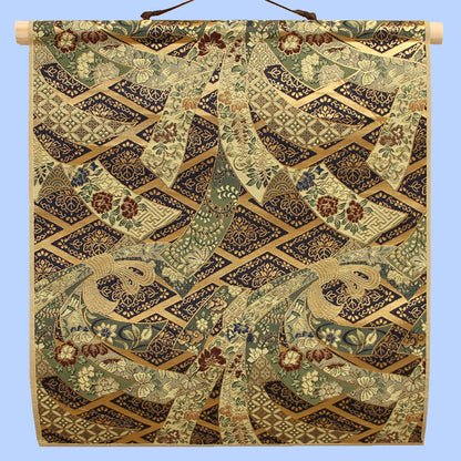 Colored paper hanging, reversible brocade hanging scroll, Aoi 3-piece body x green