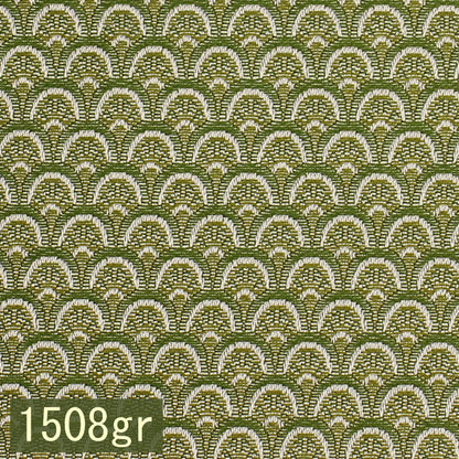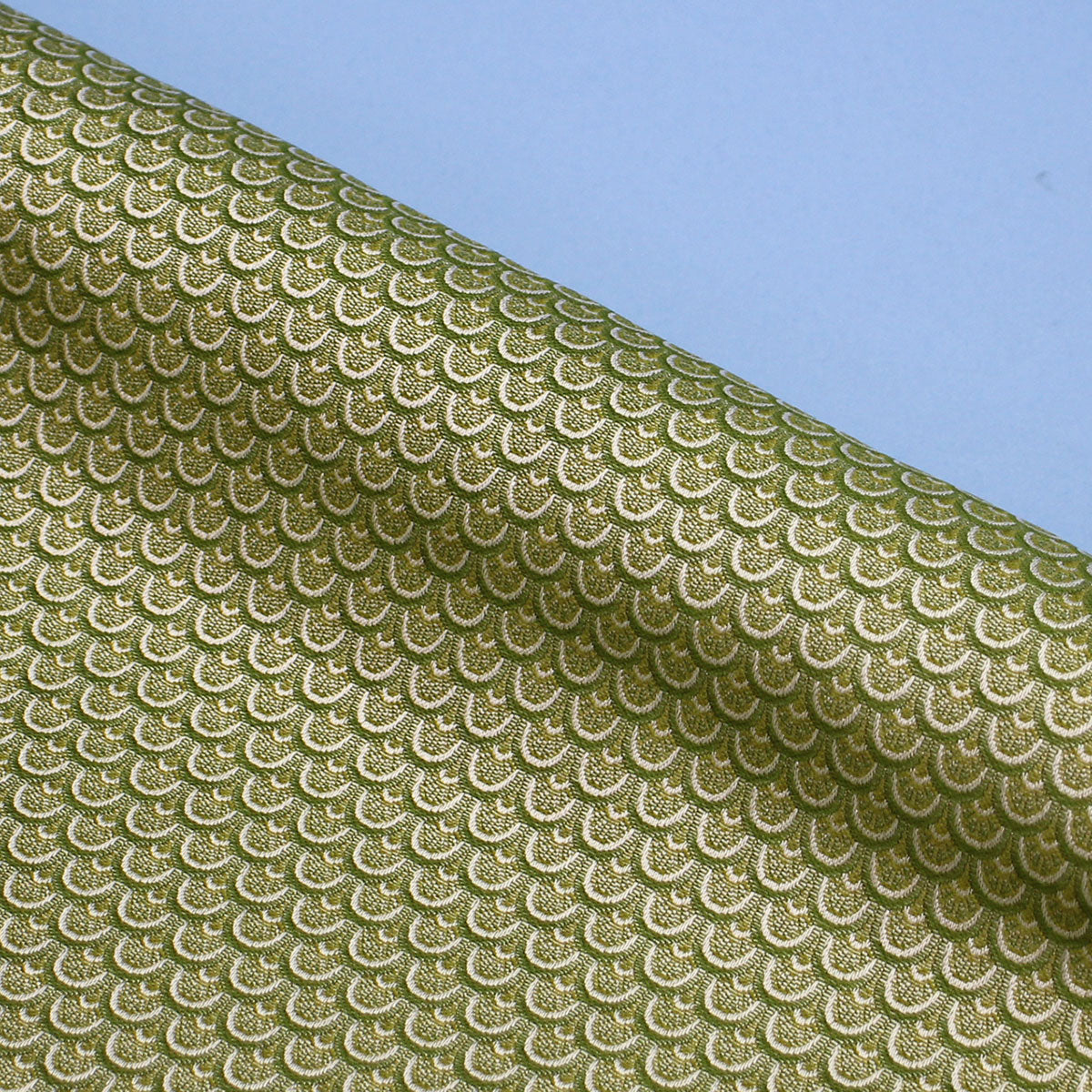 The photo shows 8cm square and 24cm square. Polyester brocade, green scale pattern, thickness: thin