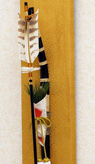 Tenture murale, décoration en forme d'arc Hamayumi avec bâton de suspension