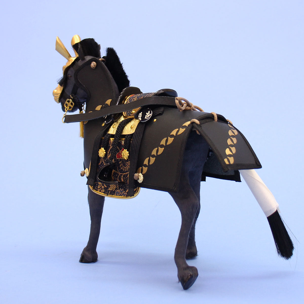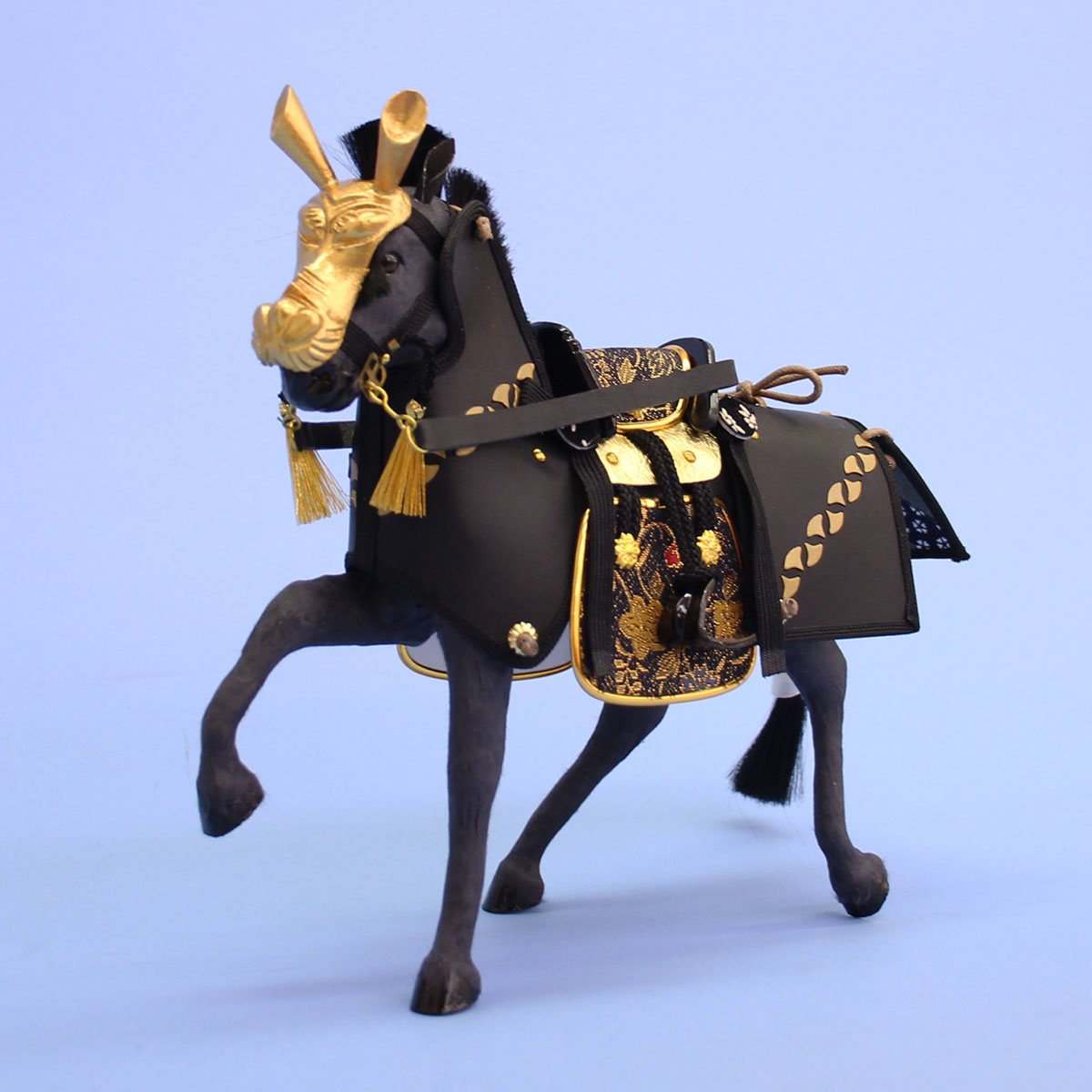Cheval décoratif, taille 6, armure de cheval hosho, décoration noire et dorée