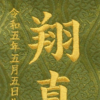 - Ce drapeau nominatif est fabriqué par le fabricant de poupées Tsurushi Hina et est fait de brocart doré luxueux avec un faucon et votre nom en peinture dorée.