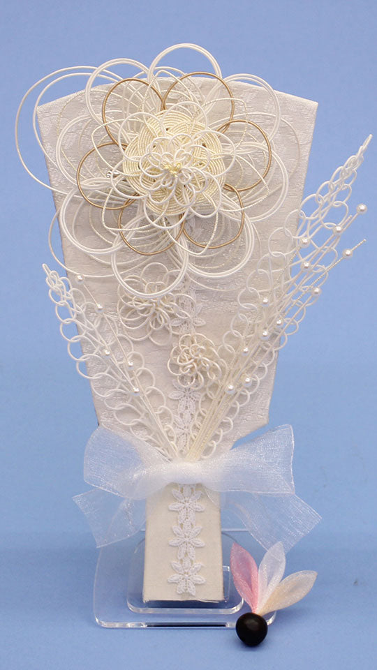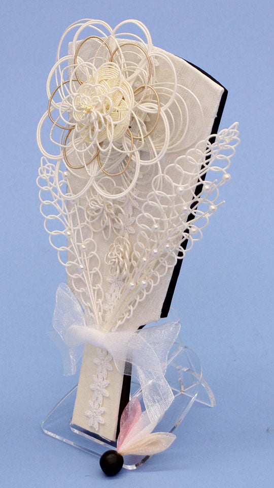 Décoration élégante n° 6 Mizuhiki Hagoita blanche avec support en acrylique