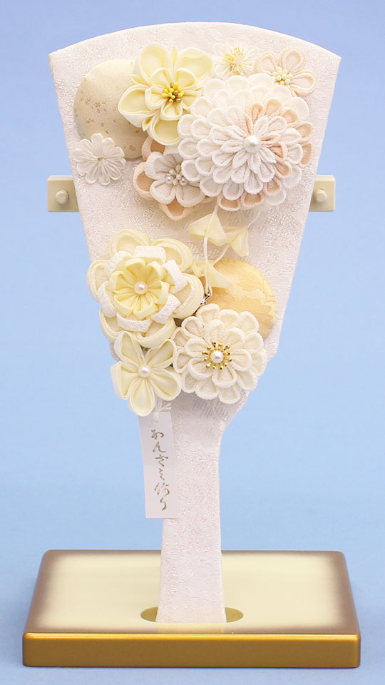 Un Hagoita élégant avec ornement de cheveux amovible n° 9, Mashiro Kanzashi, support de gradation dorée inclus