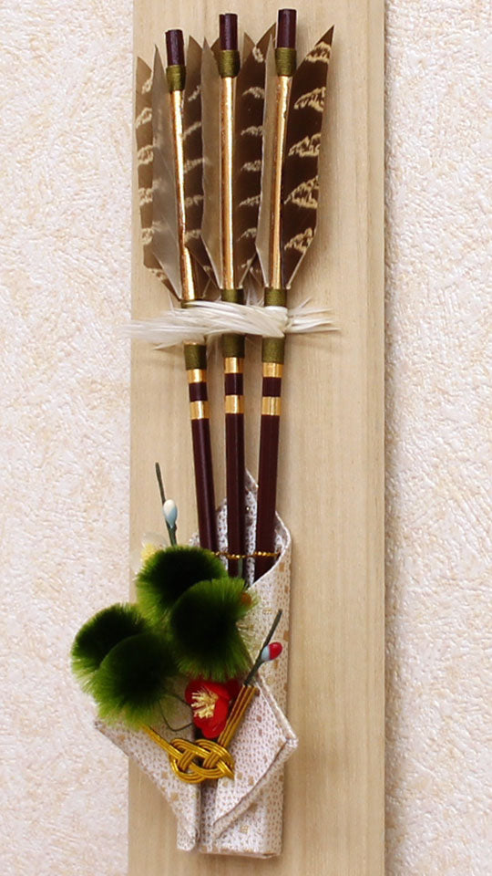Flèches Hamaya à suspendre au mur, kimekomi de paulownia blanc, trois flèches