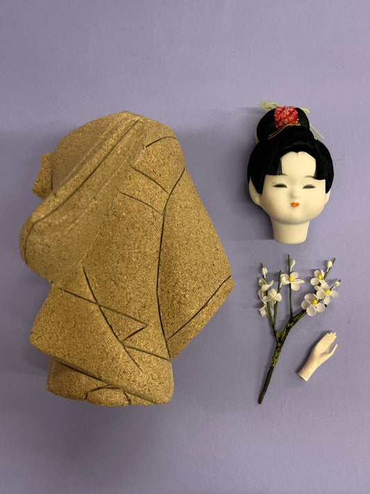 Matériau de la poupée en kimekomi : courge, pin, bambou et prune