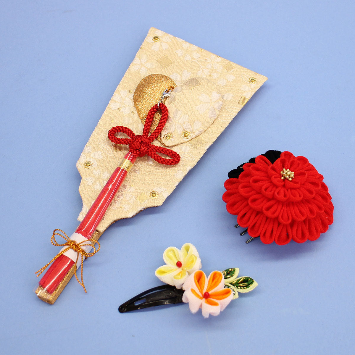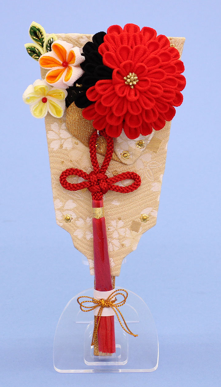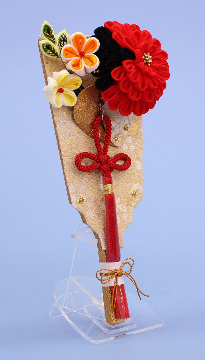 JUHO-TOUGEI Accessoire de coiffure élégant Hagoita Mum (rouge) avec support en acrylique