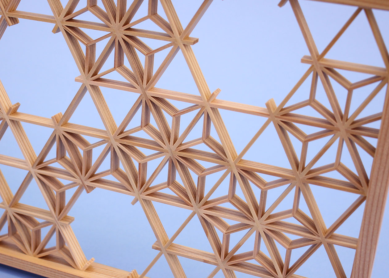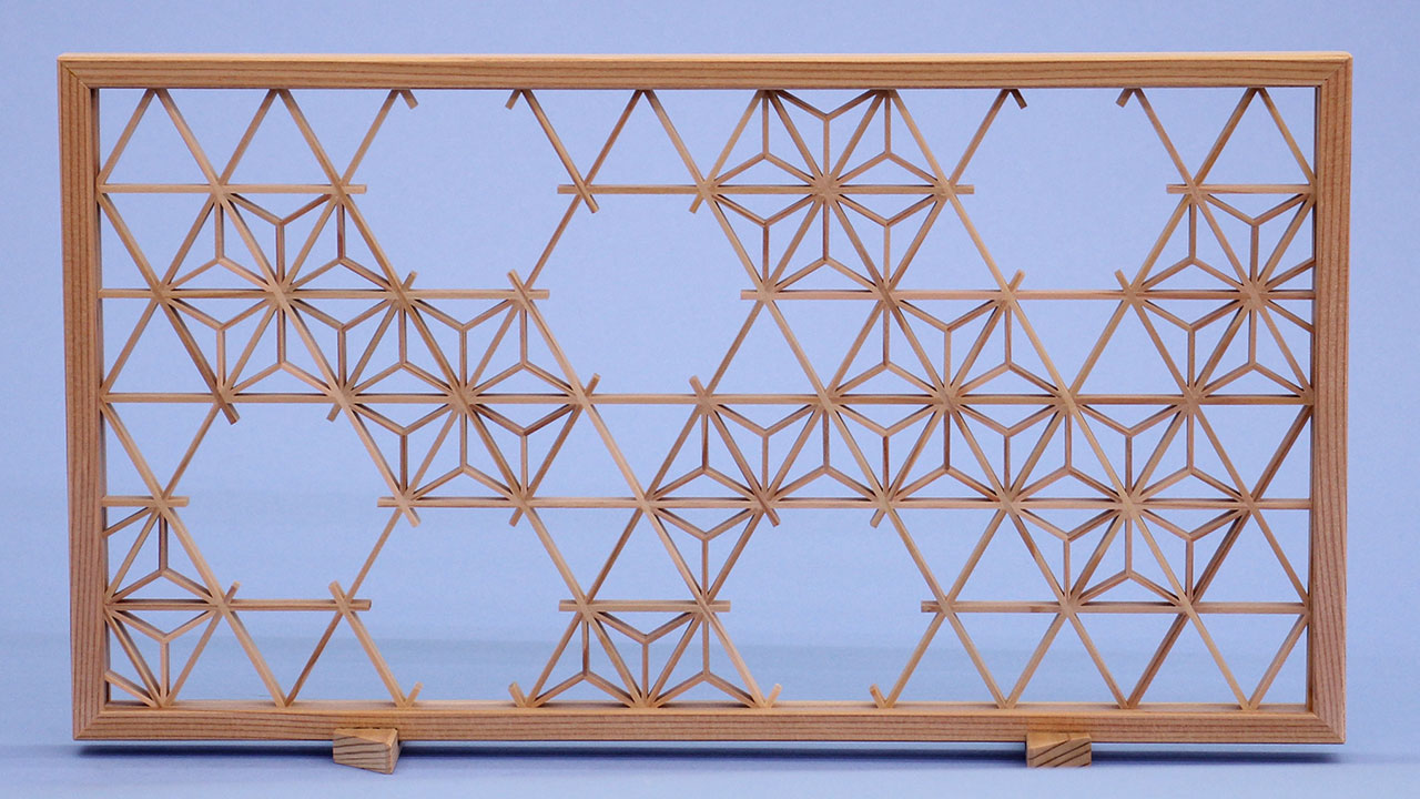 • Le Kamo Kumiko est originaire de la ville de Kamo, dans la préfecture de Niigata, et est fabriqué à l'aide d'une technique traditionnelle de travail du bois dans laquelle de petits morceaux de bois sont assemblés sans utiliser de clous pour créer des motifs géométriques précis.