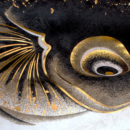 - Un magnifique streamer carpe en tissu jacquard avec une finition à la feuille d'or qui le rend déperlant.
