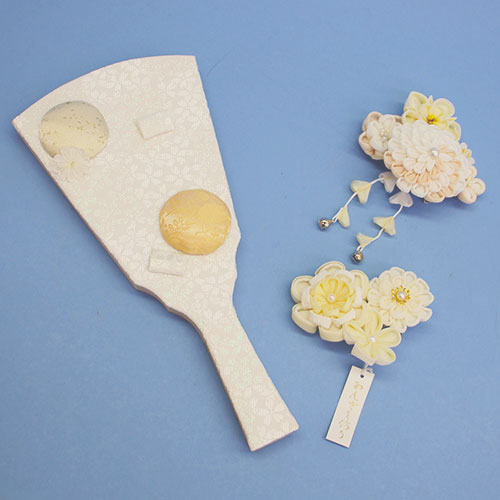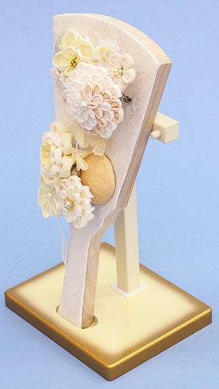 Un Hagoita élégant avec ornement de cheveux amovible n° 9, Mashiro Kanzashi, support de gradation dorée inclus