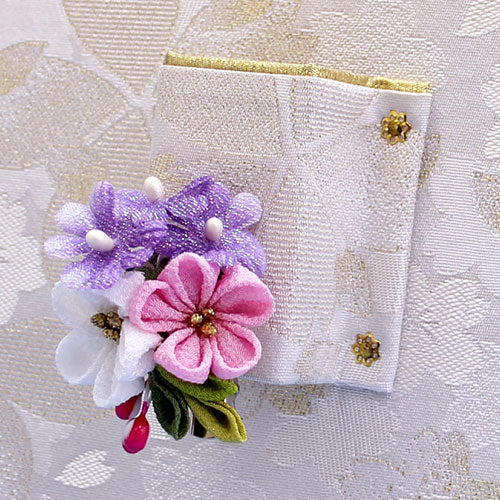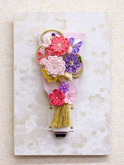 Décorations du Nouvel An pour le premier Nouvel An et la première fête. Un support pour Hagoita. Dimensions : 30 x 20 cm (largeur x hauteur). Une suspension murale et un support pour Hagoita de petite taille (taille 7, 21 cm de hauteur ) sont recouverts de tissu blanc et ornés de fleurs de cerisier. Une mini décoration pour cheveux est également disponible. Les décorations Hagoita sont présentées à titre d'illustration uniquement.