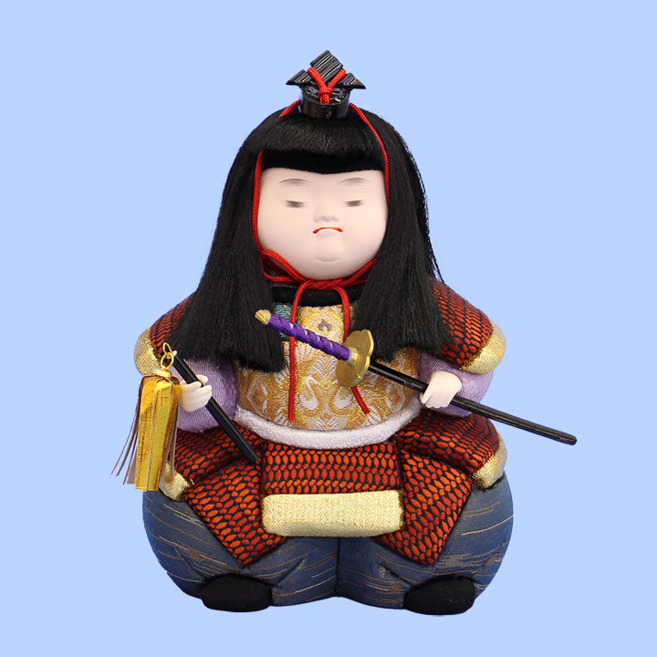 Une poupée en kimekomi recommandée pour la fête de mai. Décoration représentant un guerrier tenant un bâton et une épée. (Hauteur : 18 cm)