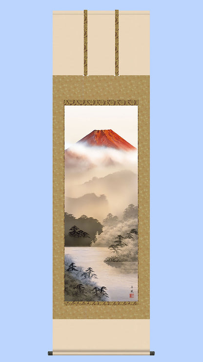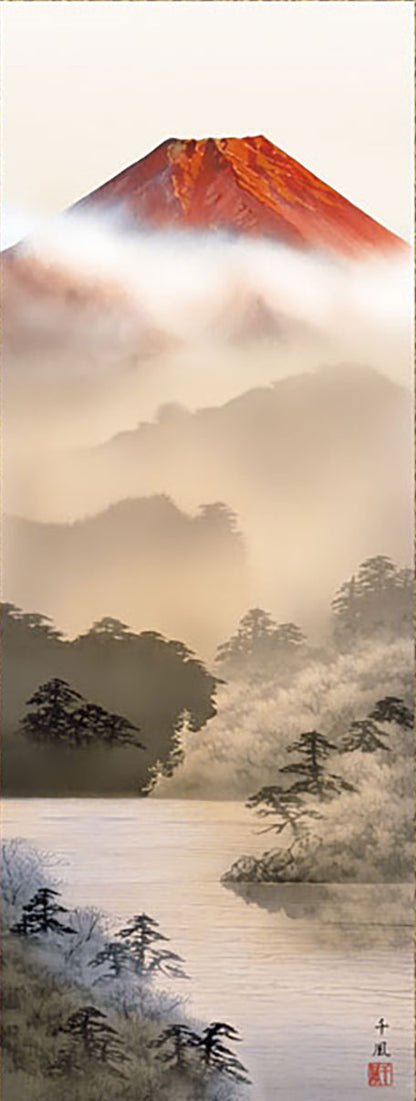 Rouleau suspendu de peinture de paysage Fuji Fuji rouge par Senpu Kumagai