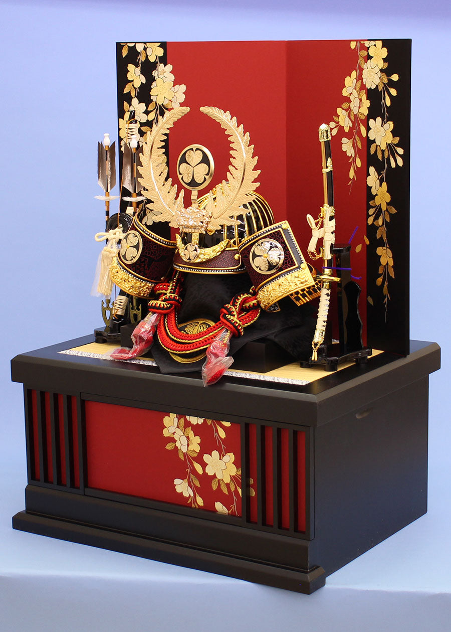 五月人形 兜収納セット 幅62cm 着用 徳川家康 赤しだれ桜
