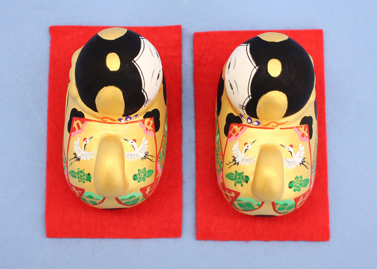 幼子の顔を模した雌雄一対の犬の形の小箱で、犬は安産・多産の象徴であり子犬は丈夫に良く育つことから安産と幼児の無病息災を祈るお守りとして飾られました。