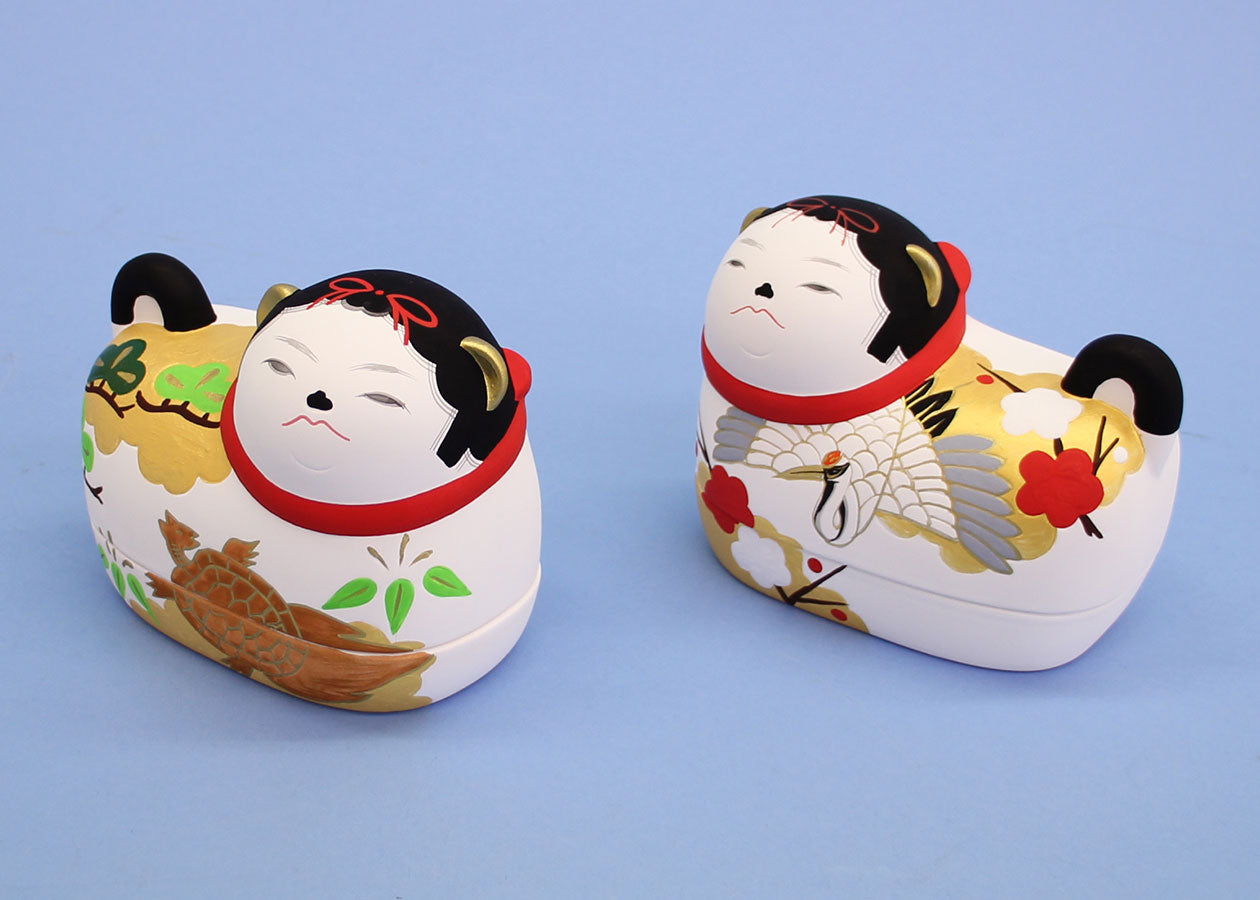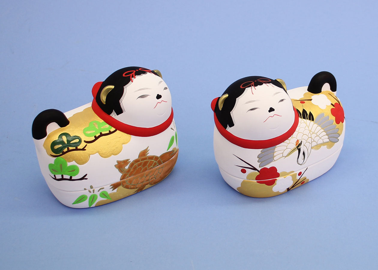 古くから犬筥はお嫁入り道具やひな祭りの丁度として多く用いられ、女性に幸せを呼ぶお守りとされております。