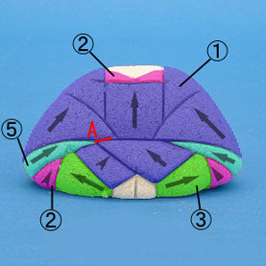 - ①~⑤までの番号はそれぞれ布の番号です。(姫の布と、殿の布は異なります。)このほかに足袋と首のちりめんがつきます。
