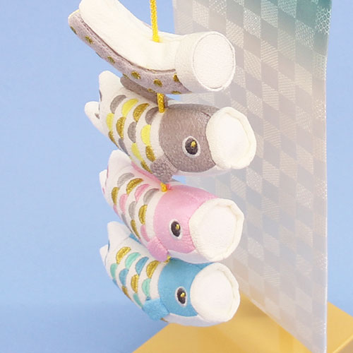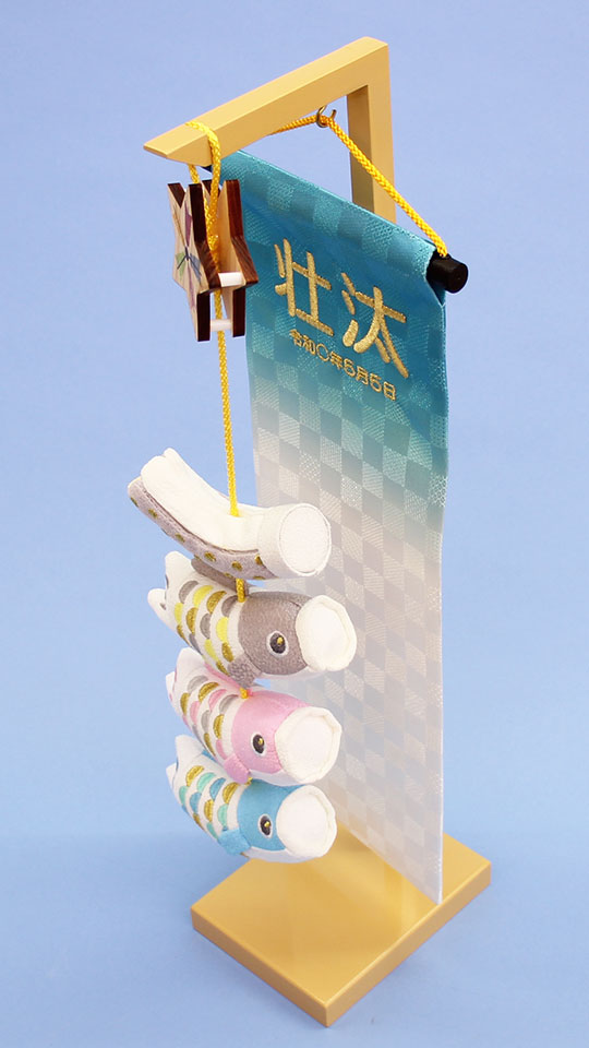 - お名前と生年月日が刺繍で入る、パステルカラーがかわいらしい鯉のぼりの室内飾りです。