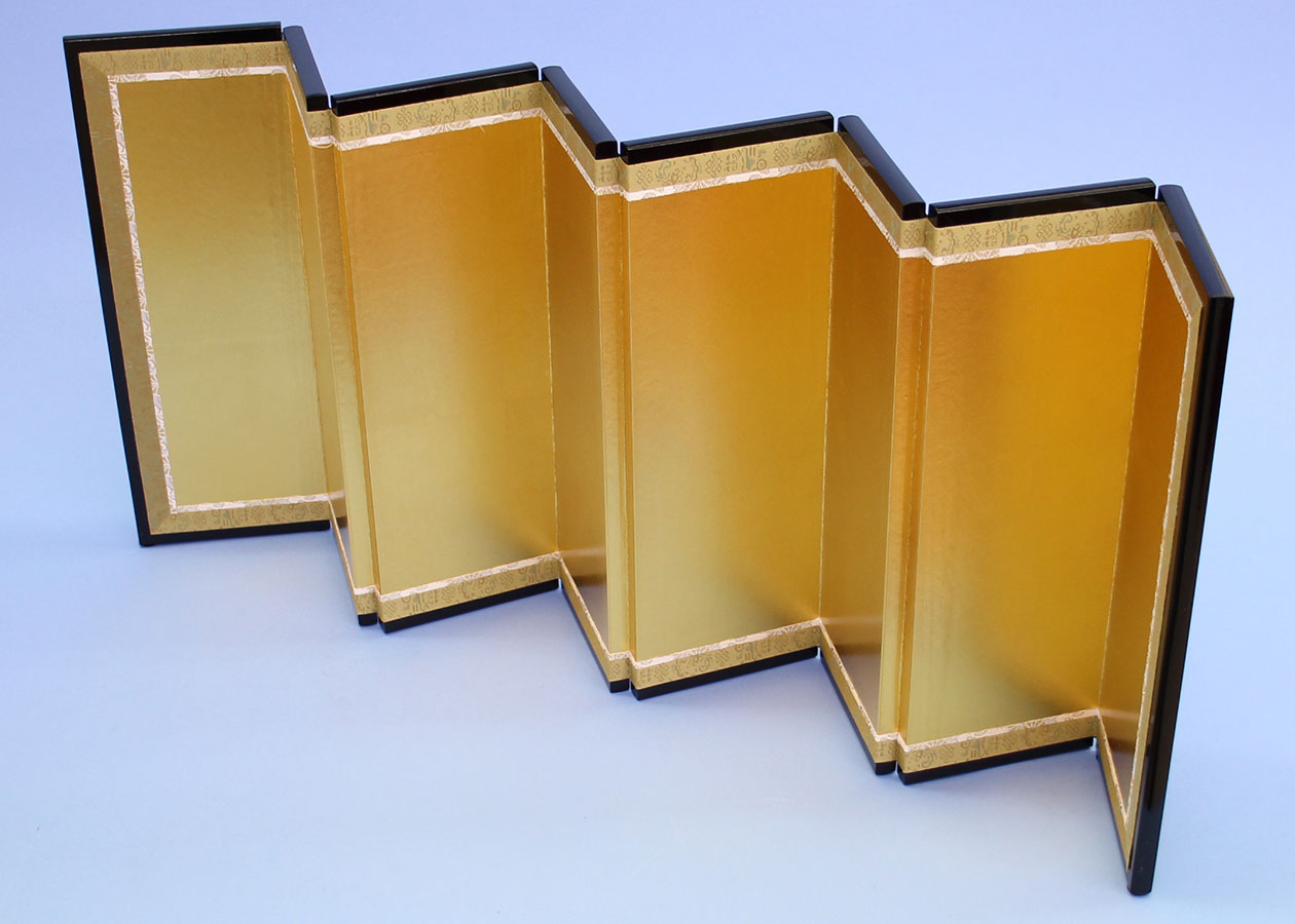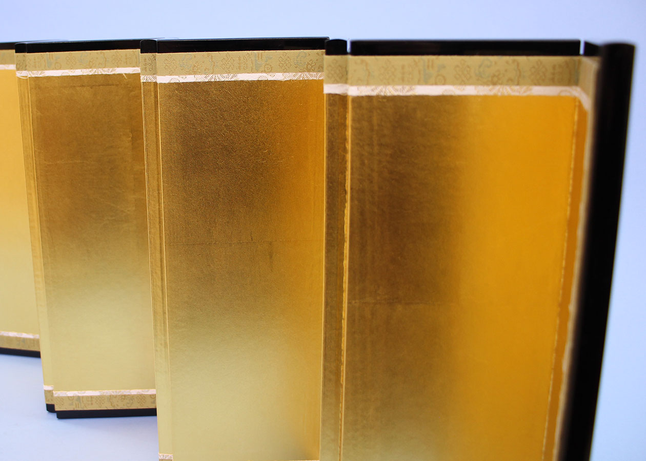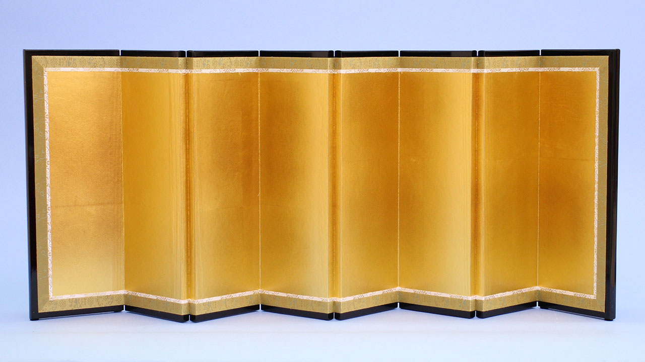 • 金箔紙を使用した八曲屏風。お雛様用屏風でまずイメージされる飾りです。