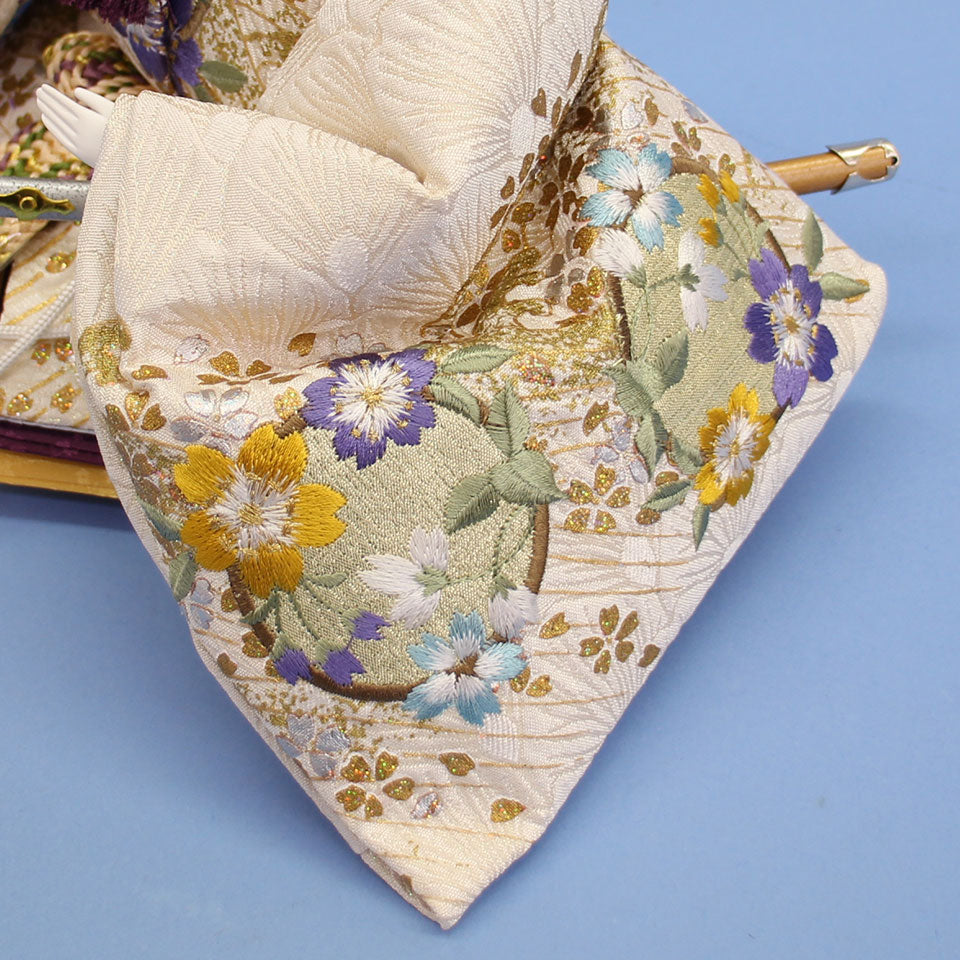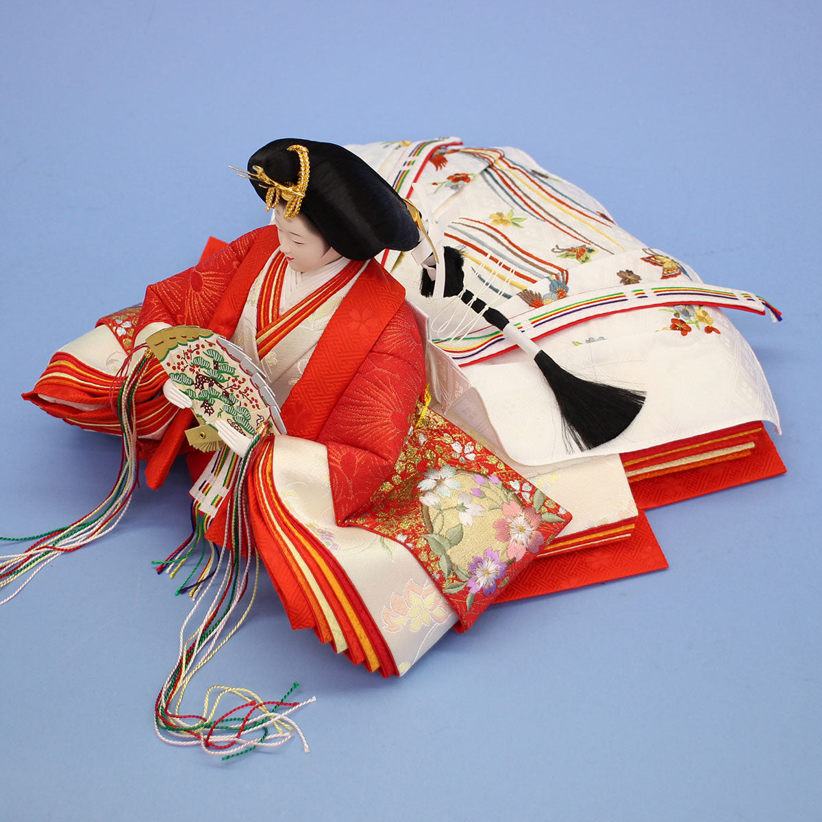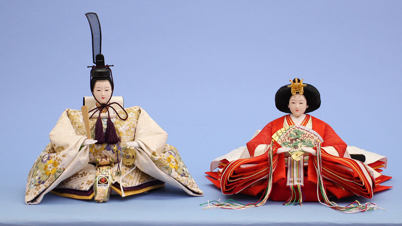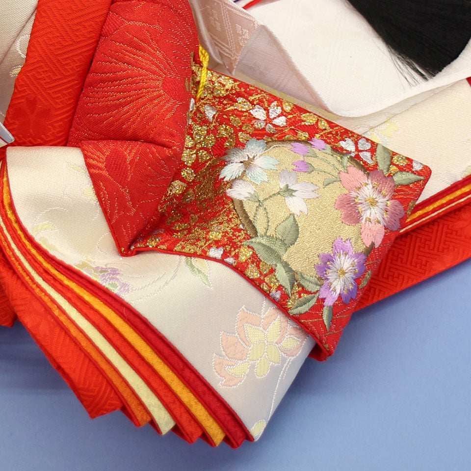 • 白と赤ベースに金彩刺繍が華やかな内裏雛。