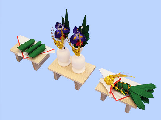 - 飾りでは使っていませんが、太鼓軍扇陣笠の三品セットには樹脂製の台が付きます。
