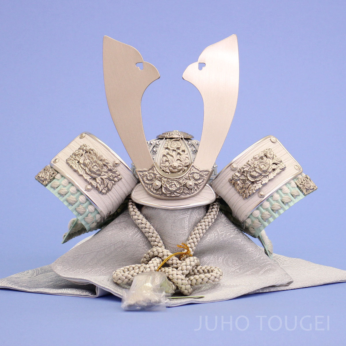 - シルバーグレーとパステルグリーンがかわいい兜飾り。