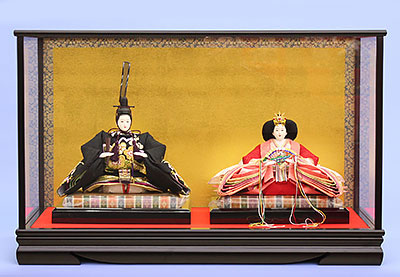カブセ人形ケース 幅66㎝ 高さ36cm 雛用10号2人36黒艶消し金バック 台紙は赤布
