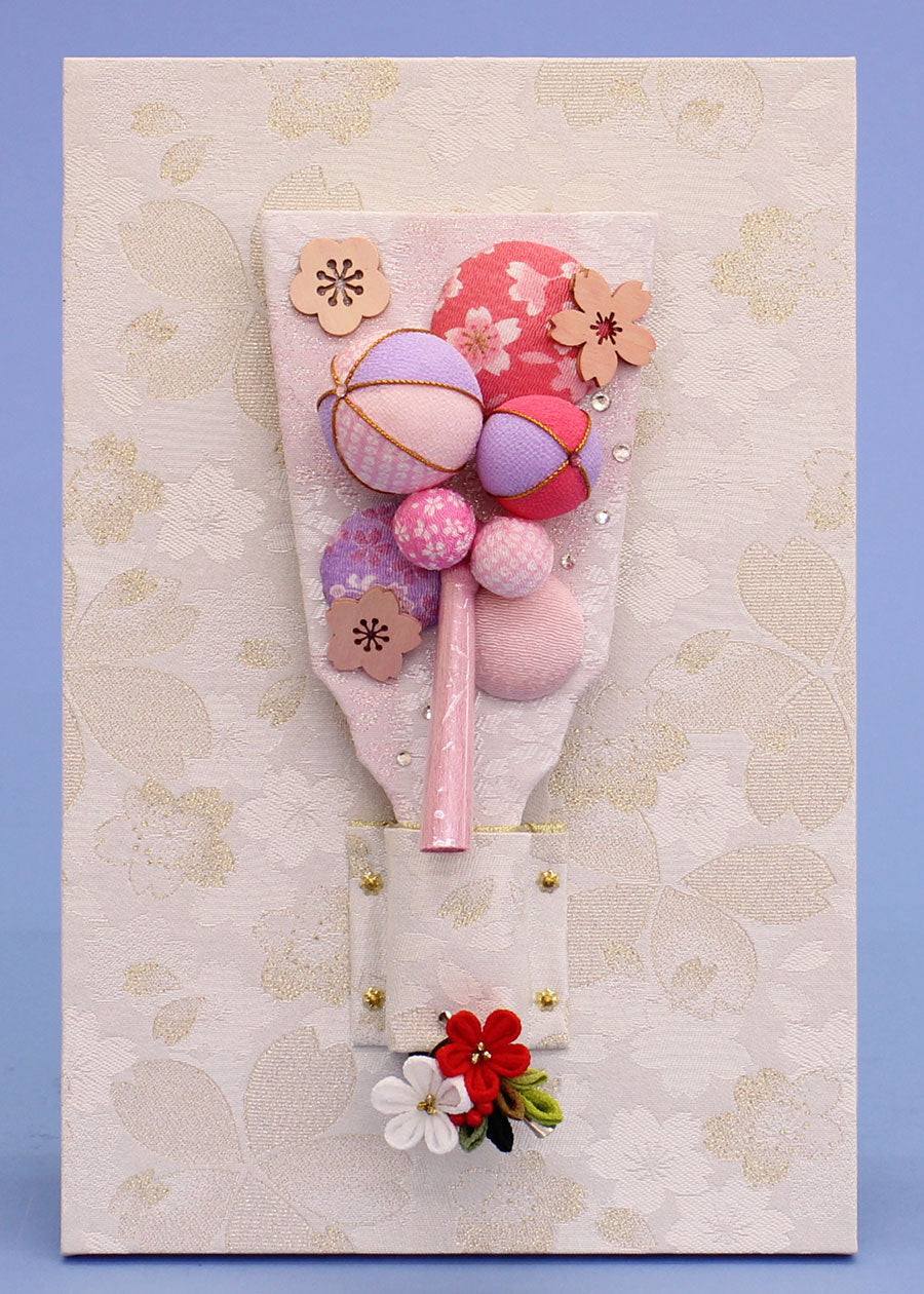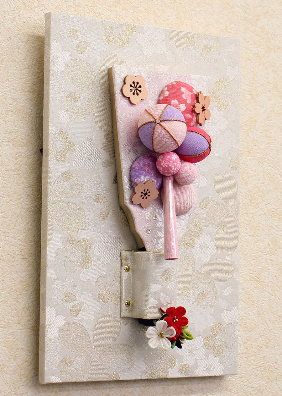99壁掛飾り 高さ30cm 7号おしゃれ羽子板 ピンクまり 白桜