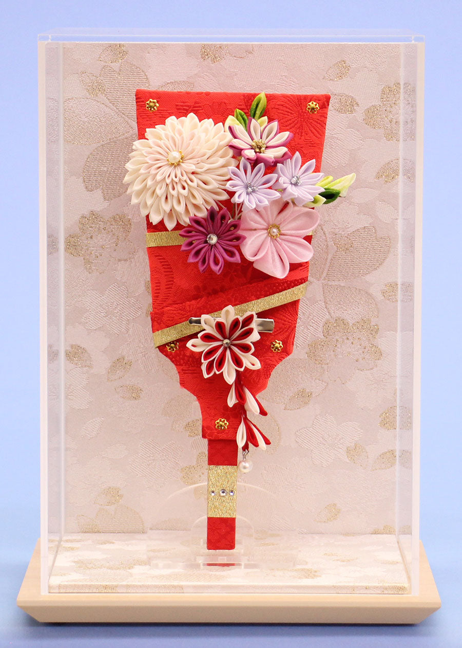 JUHO-TOUGEI 7号つまみかんざしが外せるおしゃれな羽子板 剣つまみ赤 白桜スリム