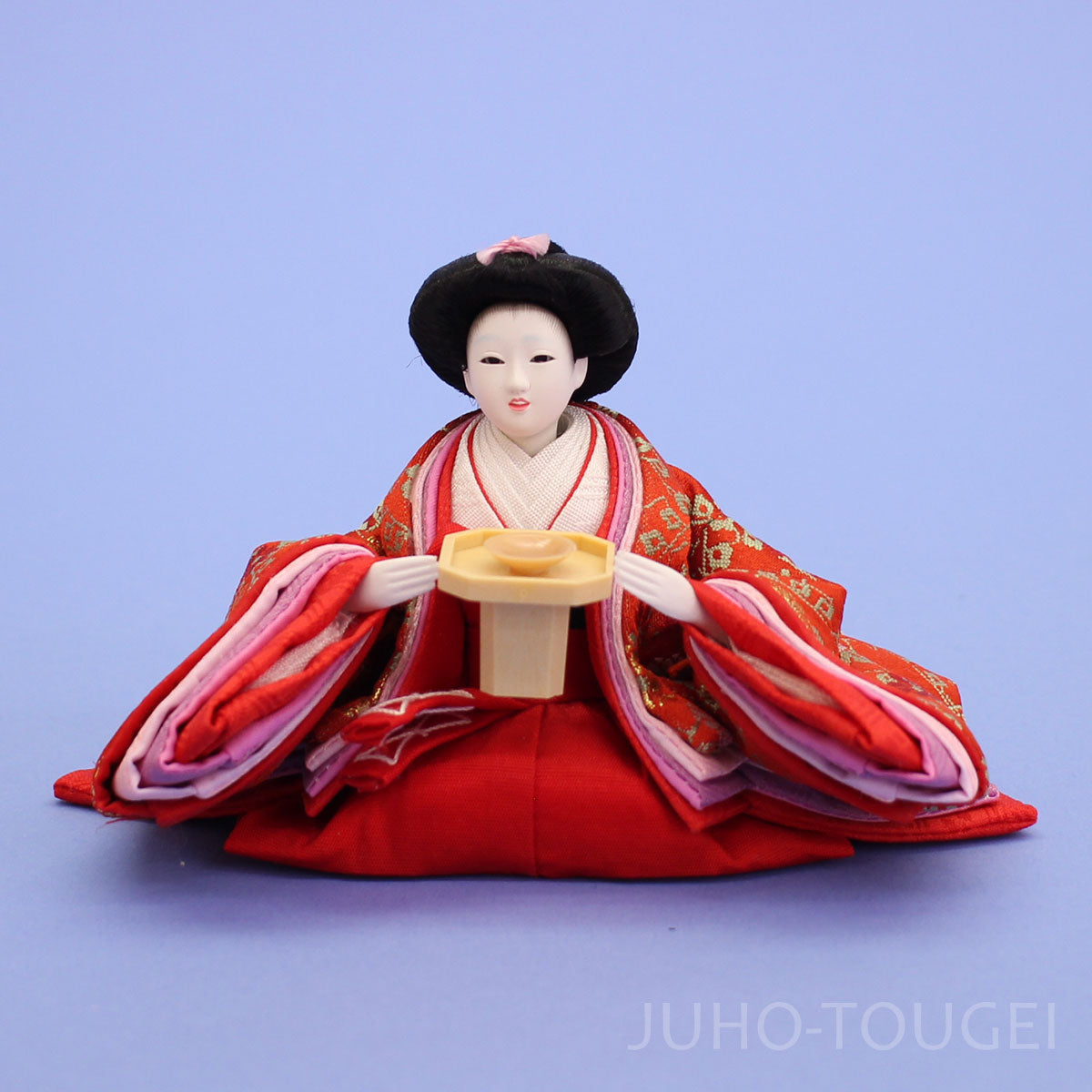 雛人形三人官女の持ち物のみでの単品販売です。こちらでご紹介するのが販売できる最小単位です。これ以上の小分け販売はできません。