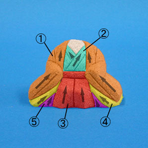 • ①~⑤までの番号は布の番号です。このほかにちりめんがつきます。