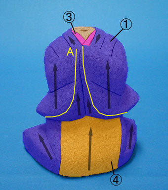 - 型紙を使わずに立体裁断で木目込み人形と作る(推奨)