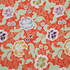 お写真は8cm角と24cm角。ポリエステル金襴赤系 唐草柄 なにわ江 厚さ:中厚
