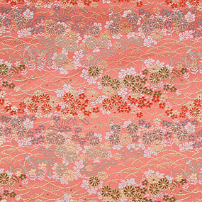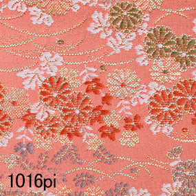 お写真は8cm角と24cm角。ポリエステル金襴ピンク系 露草に菊 厚さ:中厚