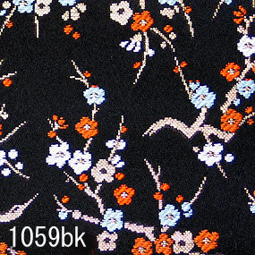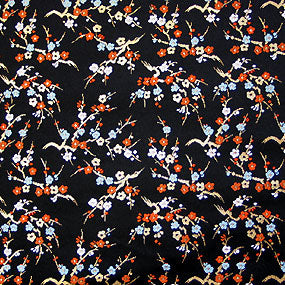 お写真は8cm角と24cm角。ポリエステル金襴黒系 枝梅柄 厚さ:中厚