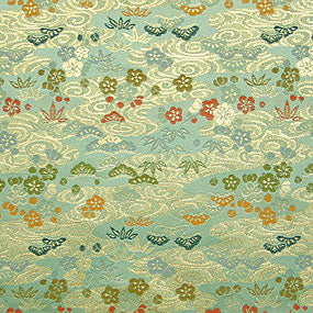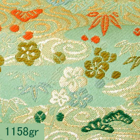 お写真は8cm角と24cm角。ポリエステル金襴緑系 流水に松竹梅 三丁 厚さ:中厚